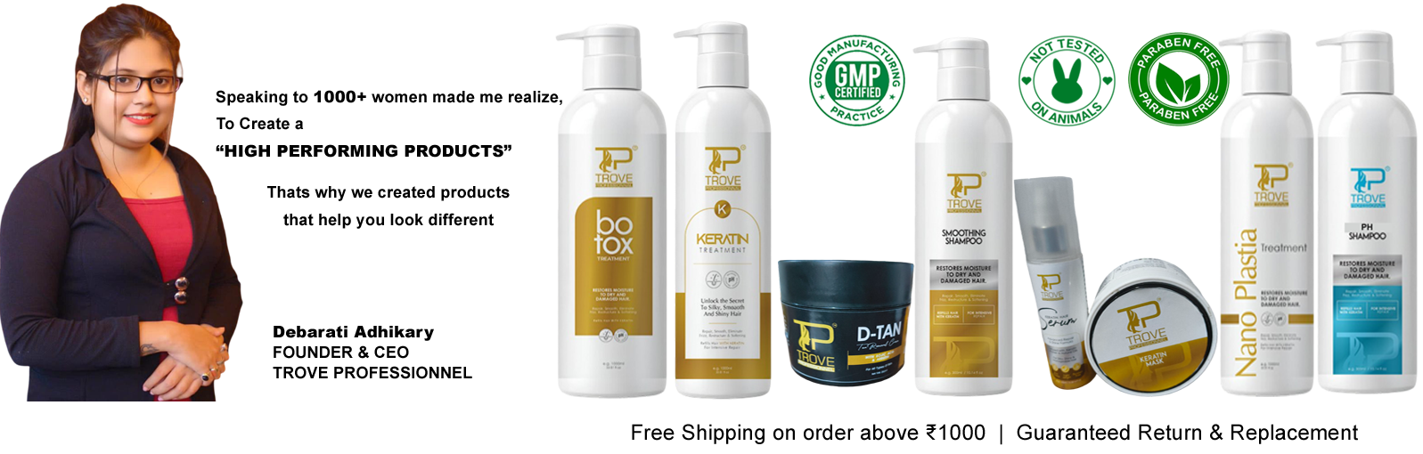 TROVE PROFESSIONNEL's products are free from Paraben, Mineral Oils, Harmful chemicals, heavy metals and are Dermatologically tested